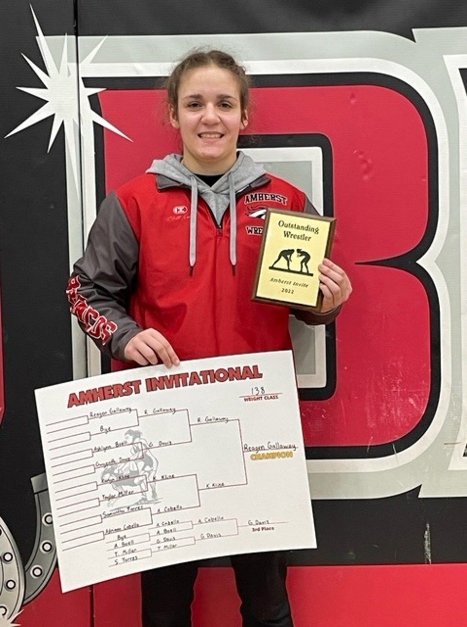 Reagen Gallaway February Winner: Amherst High School In the month of January, Reagen Gallaway wrestled in 4 Girls High School Varsity Girls Wrestling Invites going undefeated and winning all four invites. This past weekend Reagen won the 1st Annual Amhers