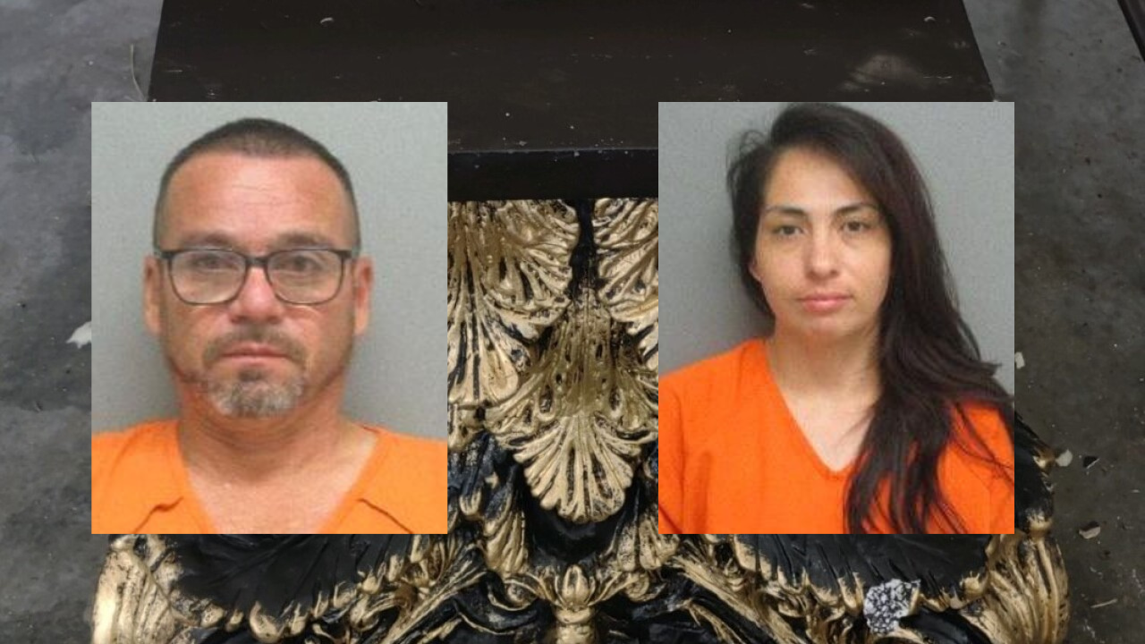 The Nebraska State Patrol arrested the pair after reportedly finding 59 lbs. of suspected methamphetamine and nine lbs. of suspected fentanyl stuffed inside foam statues at an I-80 rest stop in Dawson County.