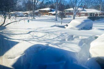 Daylight revealed cars nearly covered by 6-foot snowdrifts and thousands of houses, some adorned in unlit holiday displays, dark from a lack of power. With snow swirling down untouched and impassable streets, forecasters warned that an additional 1 to 2 feet of snow was possible in some areas through early Monday morning amid wind gusts of 40 mph. Police said Sunday evening that there were two “isolated” instances of looting during the storm.