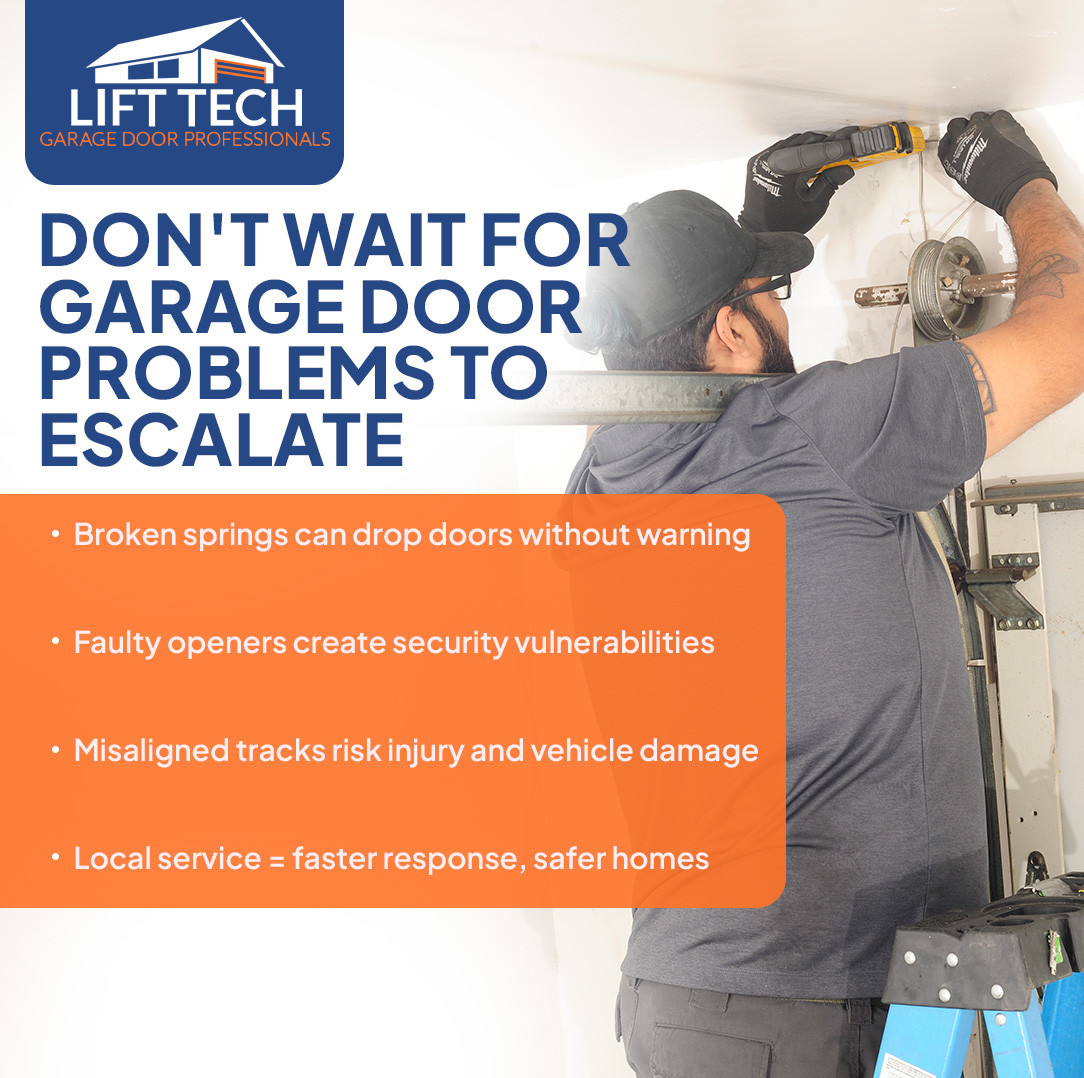 Local service provides faster, lasting solutions. Lift Tech Garage Door Professionals offers garage door spring replacement, opener repair, and garage door service, preventing repeated issues and reducing disruption.